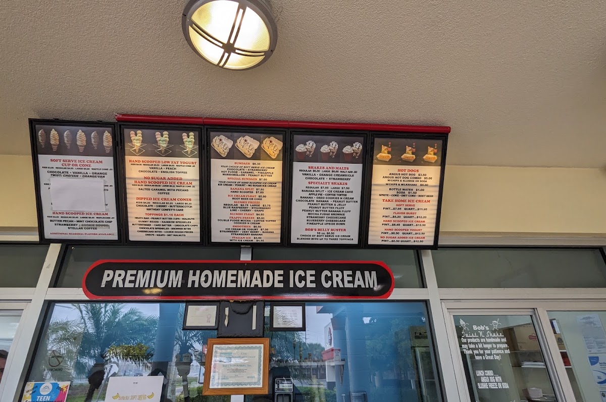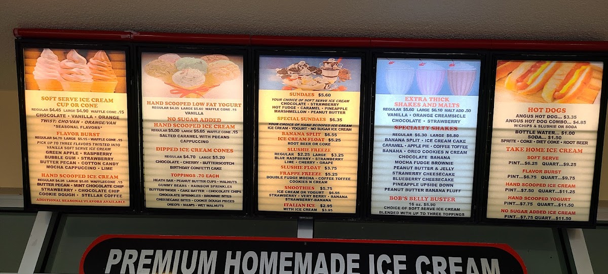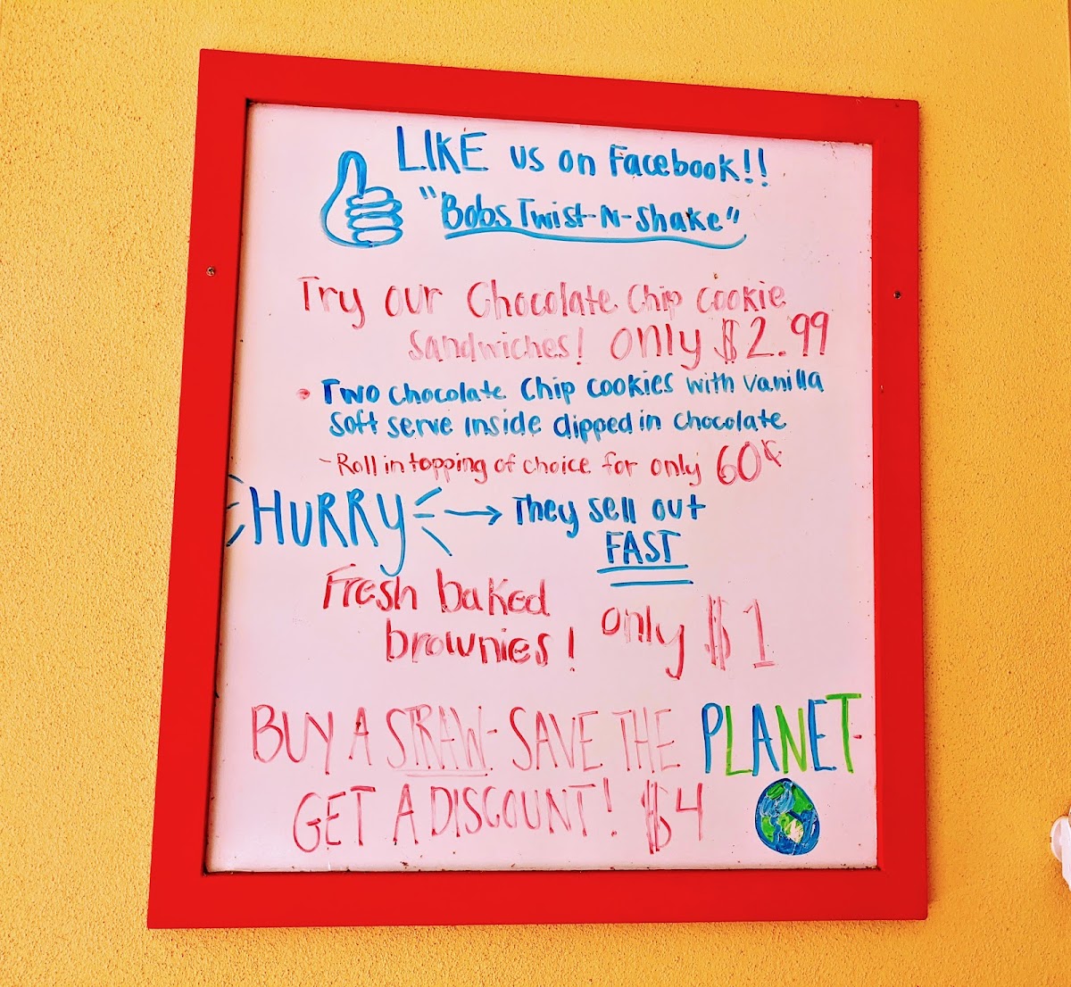 Bob's Twist N' Shake offers a straightforward and inviting menu centered on classic ice cream treats and casual comfort bites. The selection features both soft serve and hand-dipped hard ice cream, accompanied by familiar favorites like banana splits, sundaes, and a variety of twist cones.